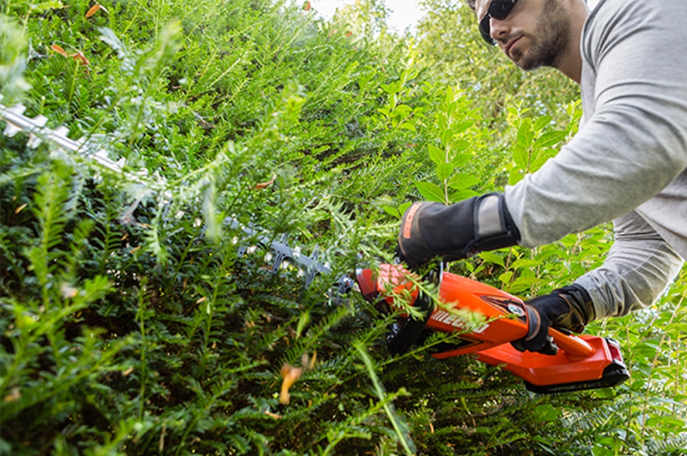 Die Akku-Heckenschere liefert mit einer Schnittlänge von 62 cm eine hervorragende Flächenleistung. Durch das geringe Gewicht können auch längere Arbeitseinsätze problemlos bewältigt werden. Die stufenlos regulierbare Drehzahl sorgt für optimal anpassbare Schnittleistung und Akkulaufzeit. Der Messerführungsschutz schützt die Heckenschere vor Beschädigungen. Das neu entwickelte Messergetriebe hat einen besonders geräuscharmen Lauf. Verglichen mit Wettbewerbern zählt die Akku-Heckenschere zu den leisesten auf dem Markt. Wie kaum eine andere eignet sich die Heckenschere ideal für den Einsatz im lärmsensiblen Bereichen wie vor Schulen, Kindergärten oder Krankenhäusern.