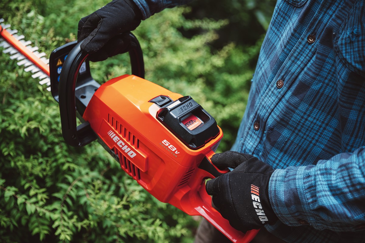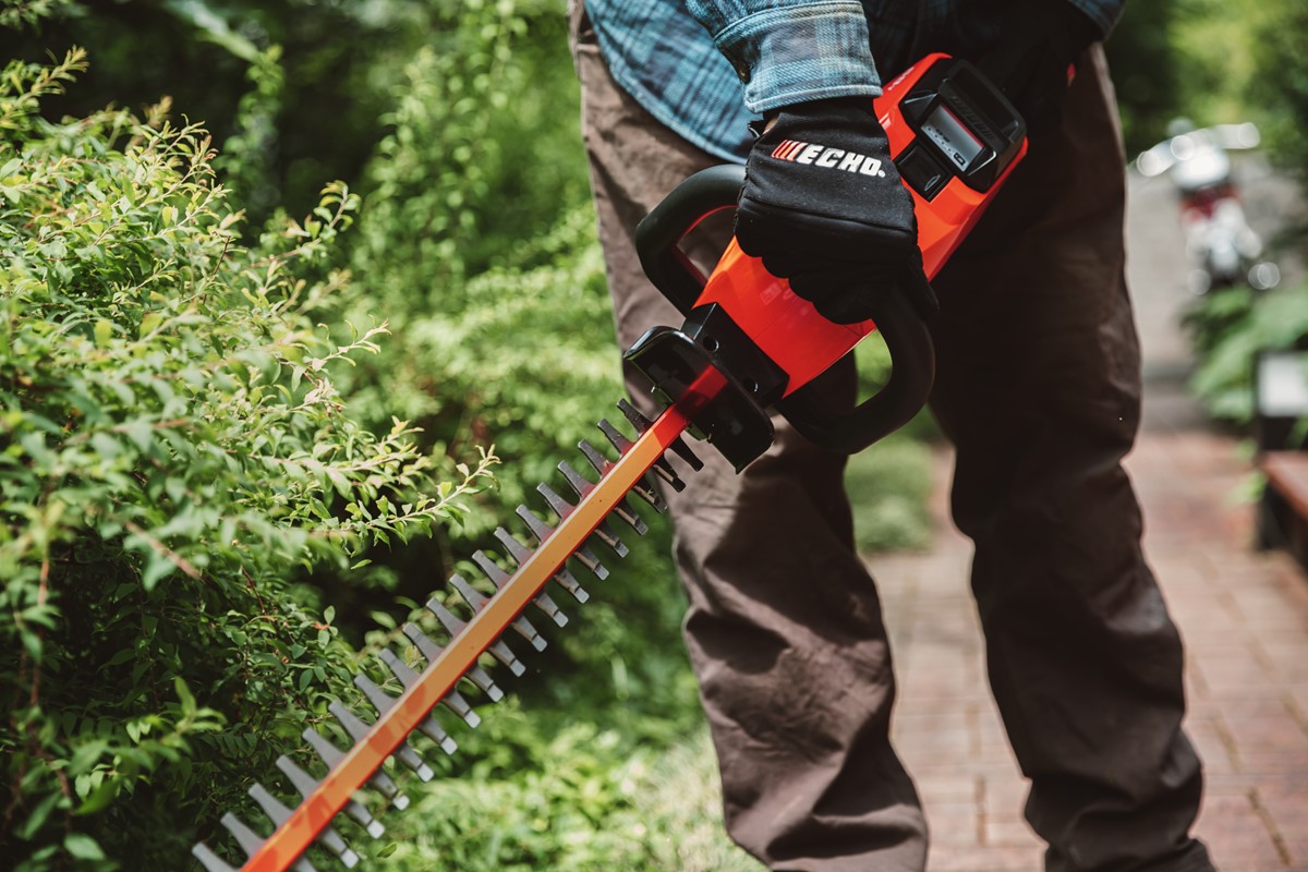 Mit der leichten Akku-Heckenschere aus dem SMART-Akkusystem von ECHO schneiden Sie mühelos Sträucher und Hecken rund ums Haus. Durch die stufenlos regulierbare Drehzahl lässt sich die Schnittleistung bequem der Aststärke anpassen. Der serienmäßige Führungsschutz schützt die Messer vor Beschädigungen bei Kontakt mit dem Boden oder der Wand. Besonders bequem: Es ist kein Gehörschutz notwendig.